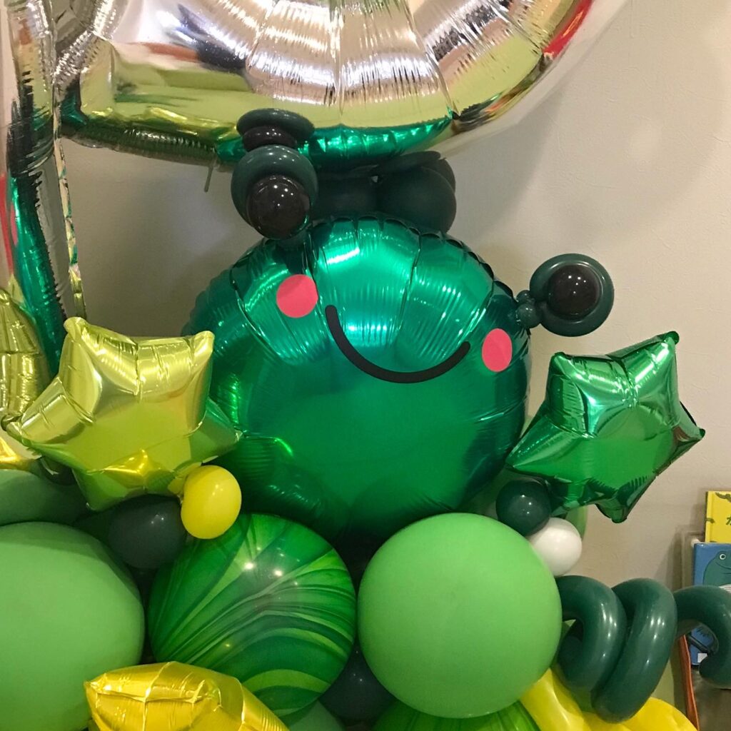 かえるの形をした風船も幾つか製造してますが、キャラクターに似てるのが見当たらず、ならば風船で作ろう!という事にしました。
