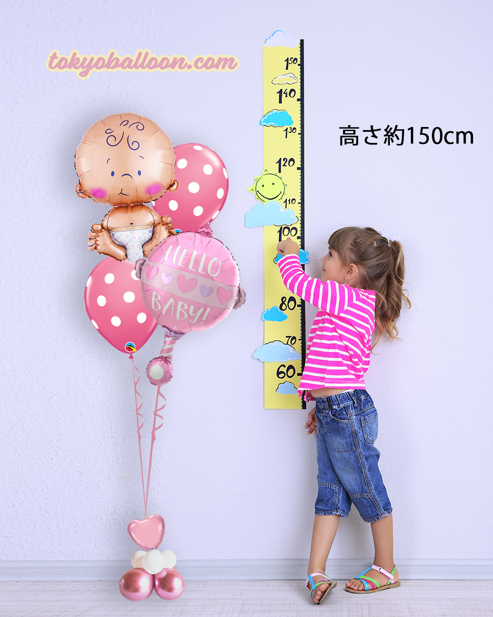 ヘリウム風船が浮いた状態では約1.5mになります。